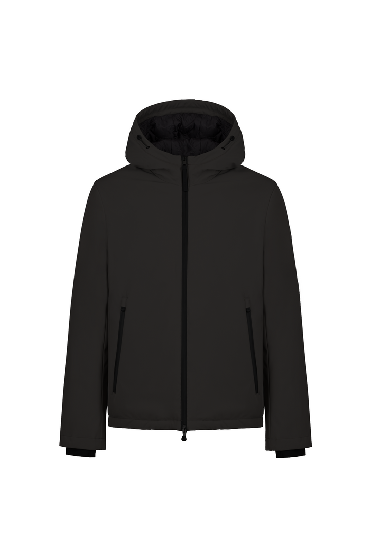 - Giubbotto con cappuccio in tessuto tecnico idrorepellente e traspirante con interno trapuntato con isolante termico “FELLEX” 100% riciclato.