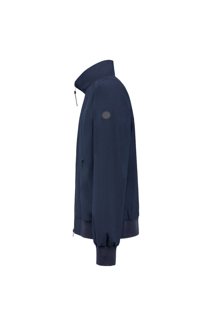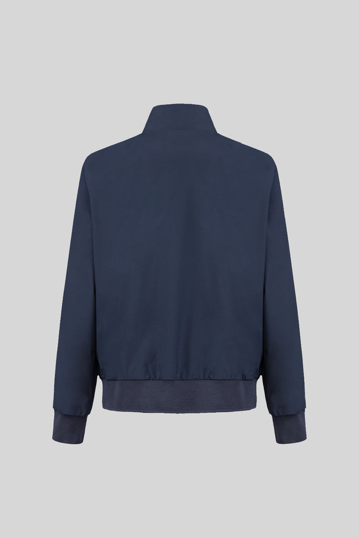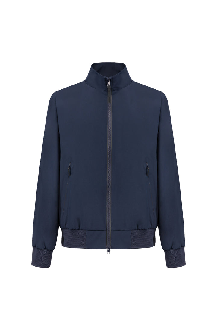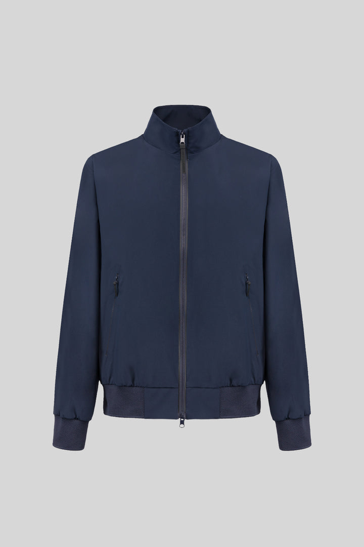 - Iconic bomber jacket with stand-up collar in soft touch technical fabric.