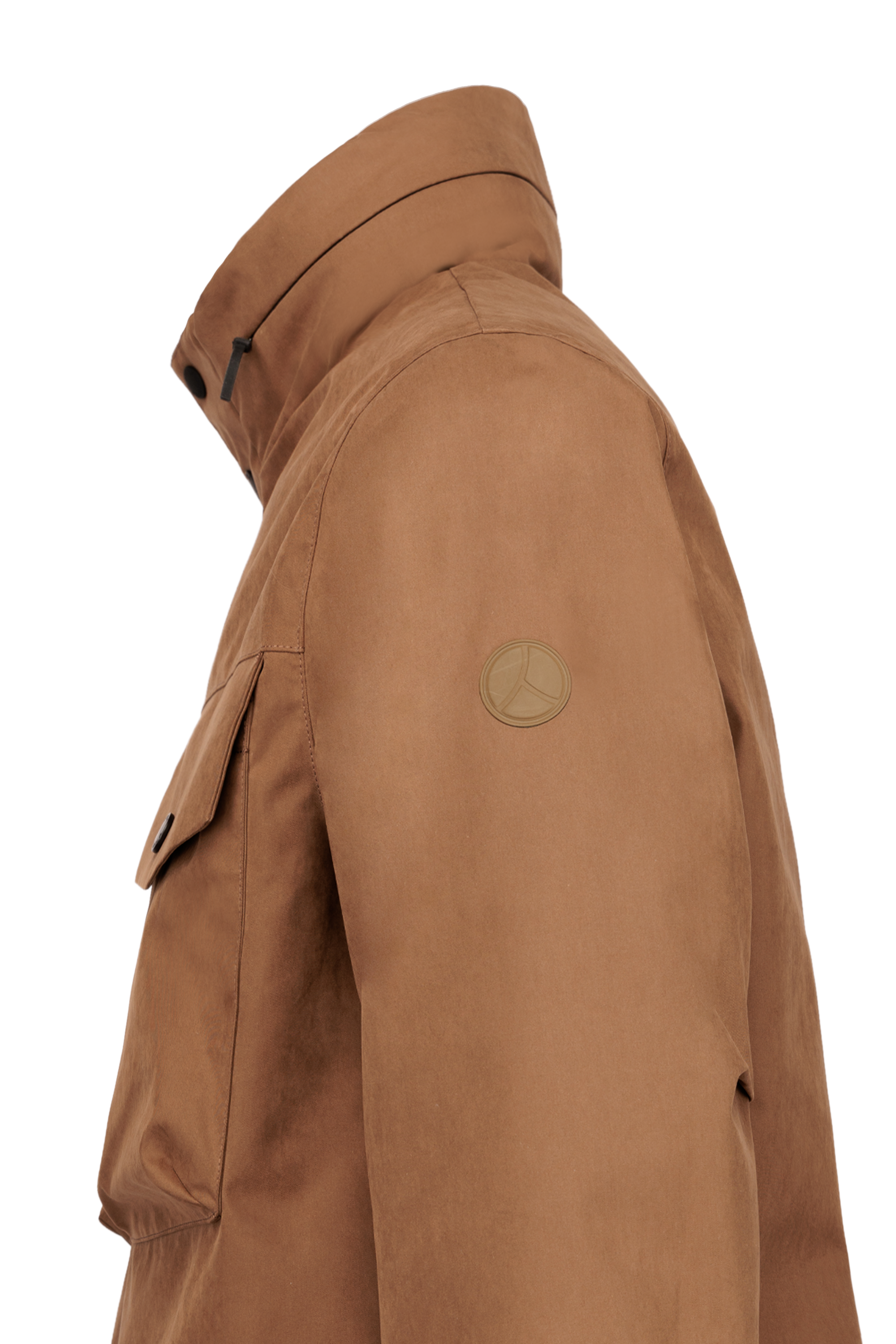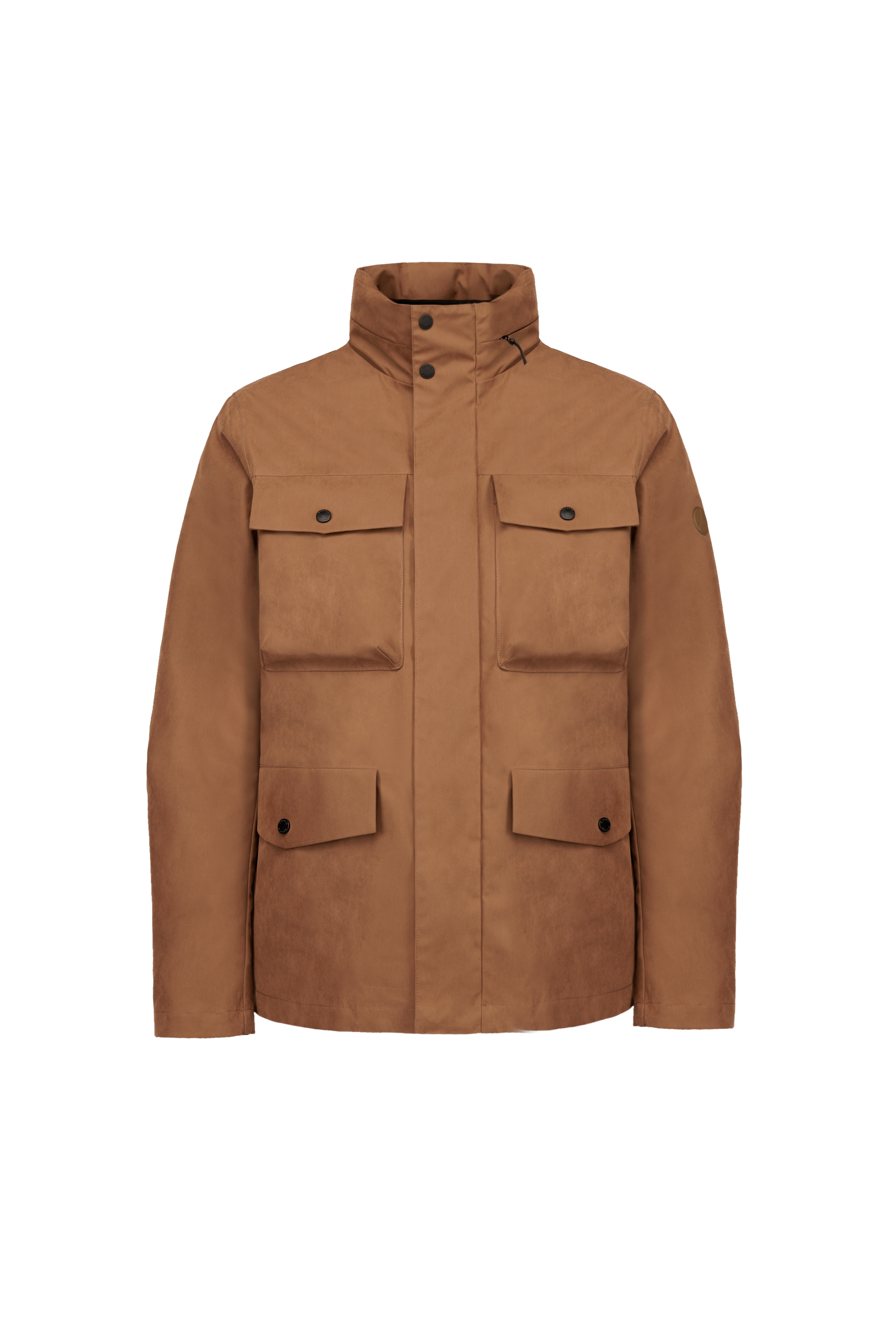 Field jacket in microfibra con membrana con cappuccio nell’interno collo in main fabric e giubbino imbottito staccabile interno e nastrature termosaldate.ì