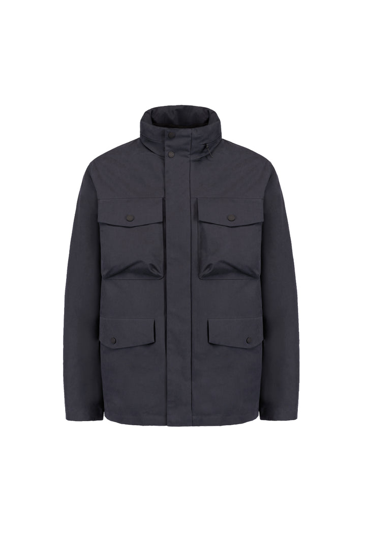 - Field jacket in microfibra con membrana con cappuccio nell’interno collo in main fabric e giubbino imbottito staccabile interno e nastrature termosaldate.