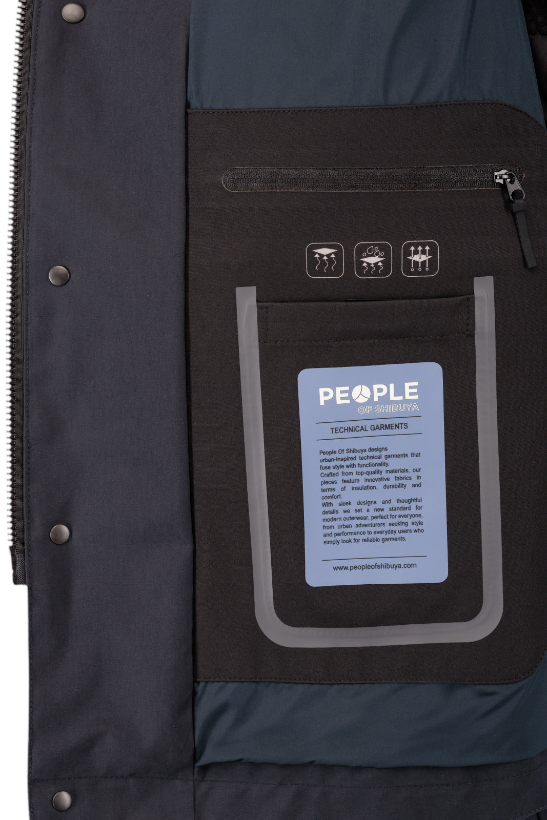 - Tasche interne termonastrate con zip portacellulare e portadocumenti.