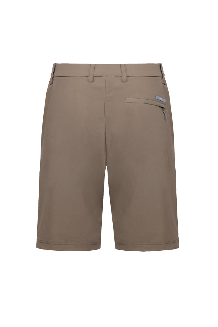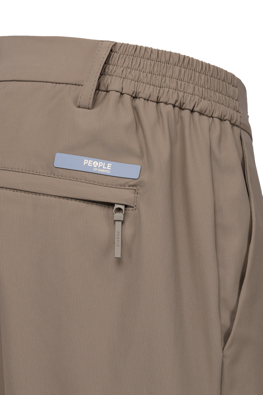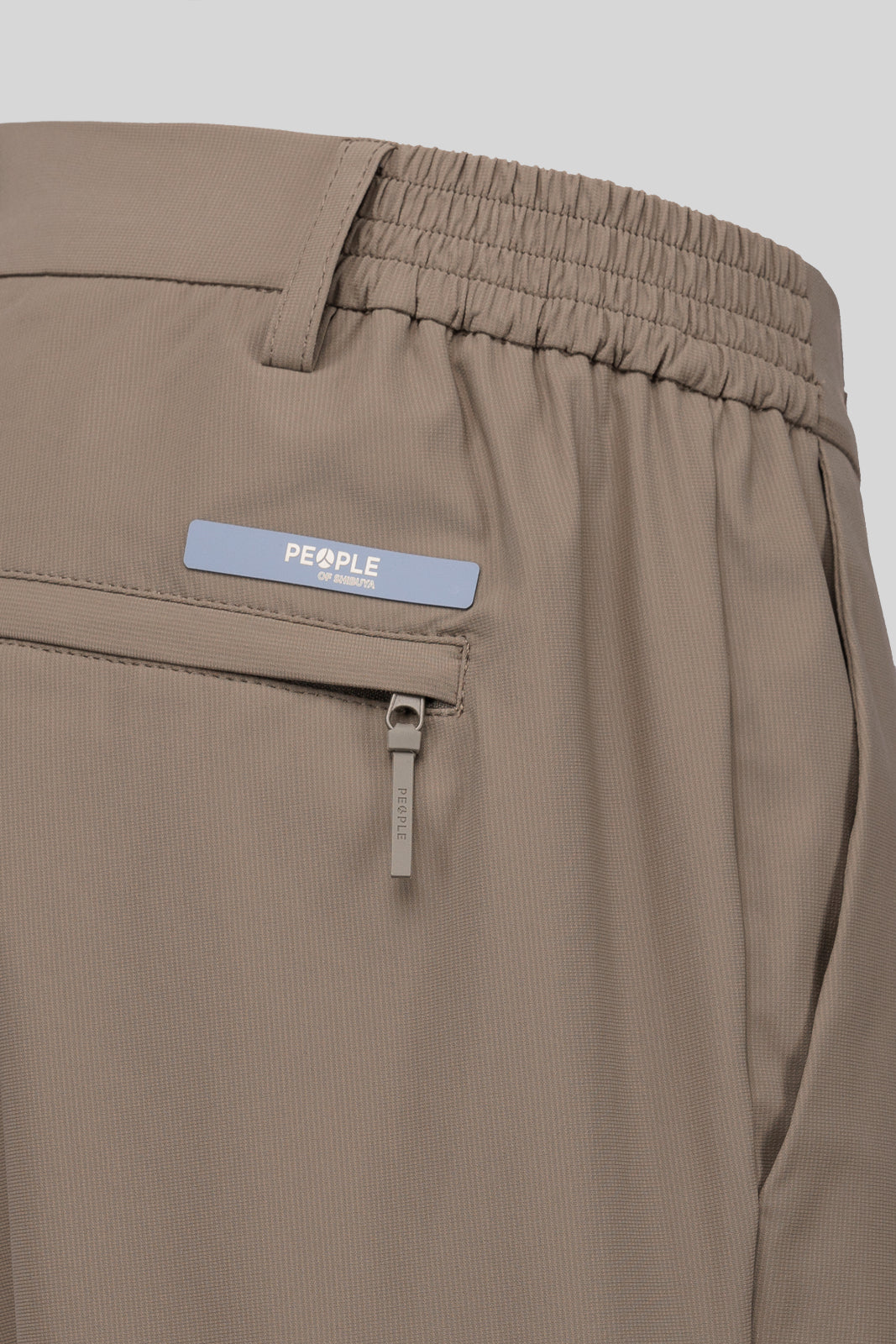 - Cintura in vita con fianchi elasticizzati e passanti e bottone a gancio personalizzato.