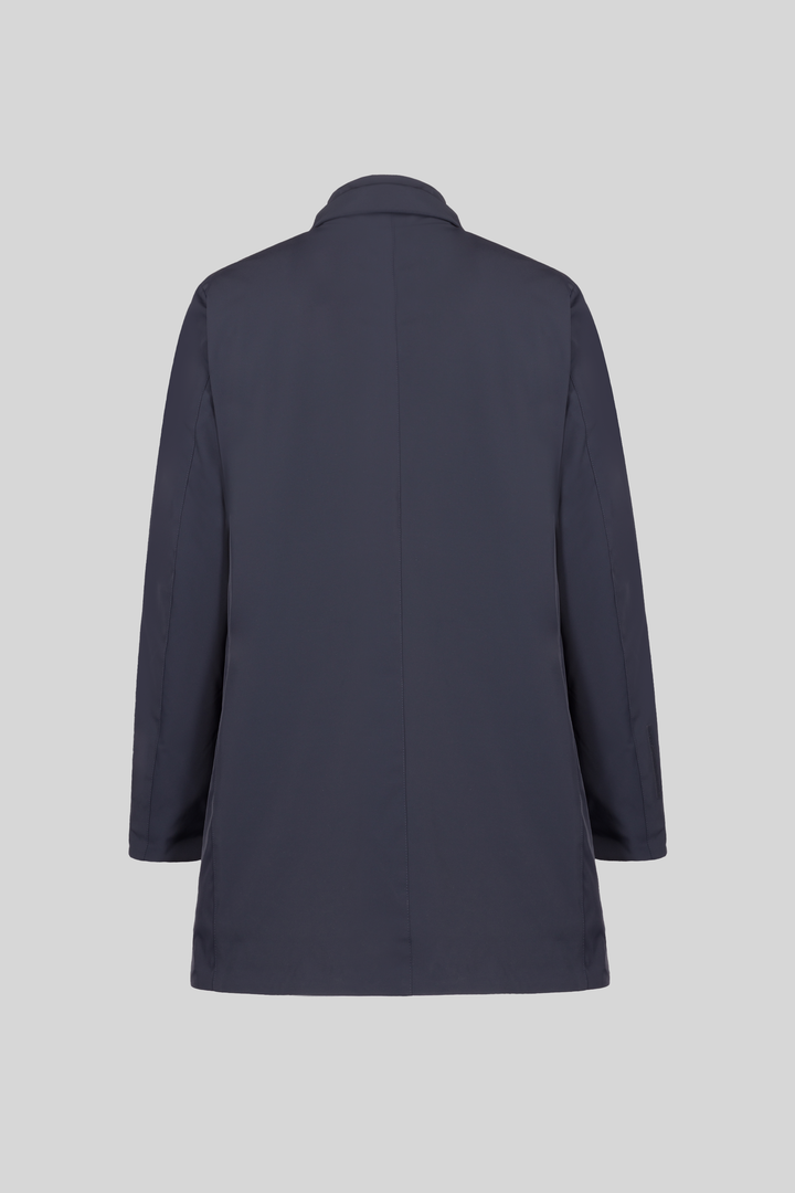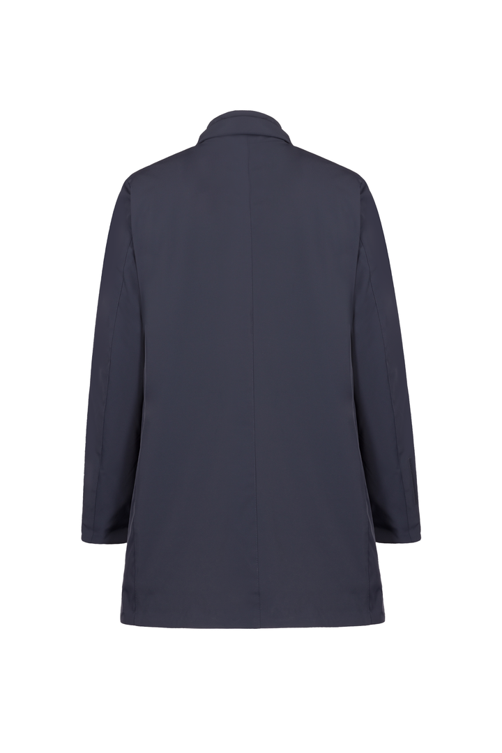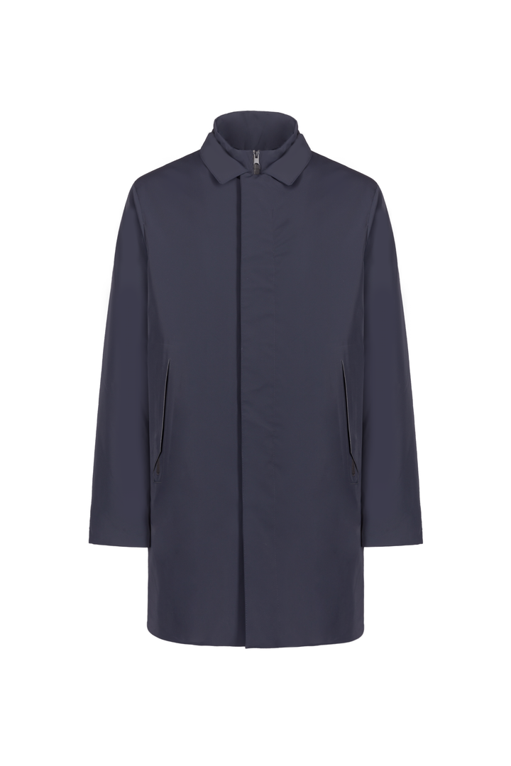 - Trench in tessuto tecnico con collo camicia.
