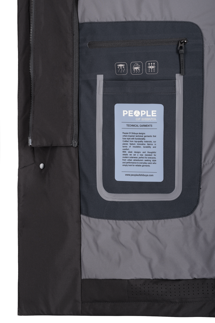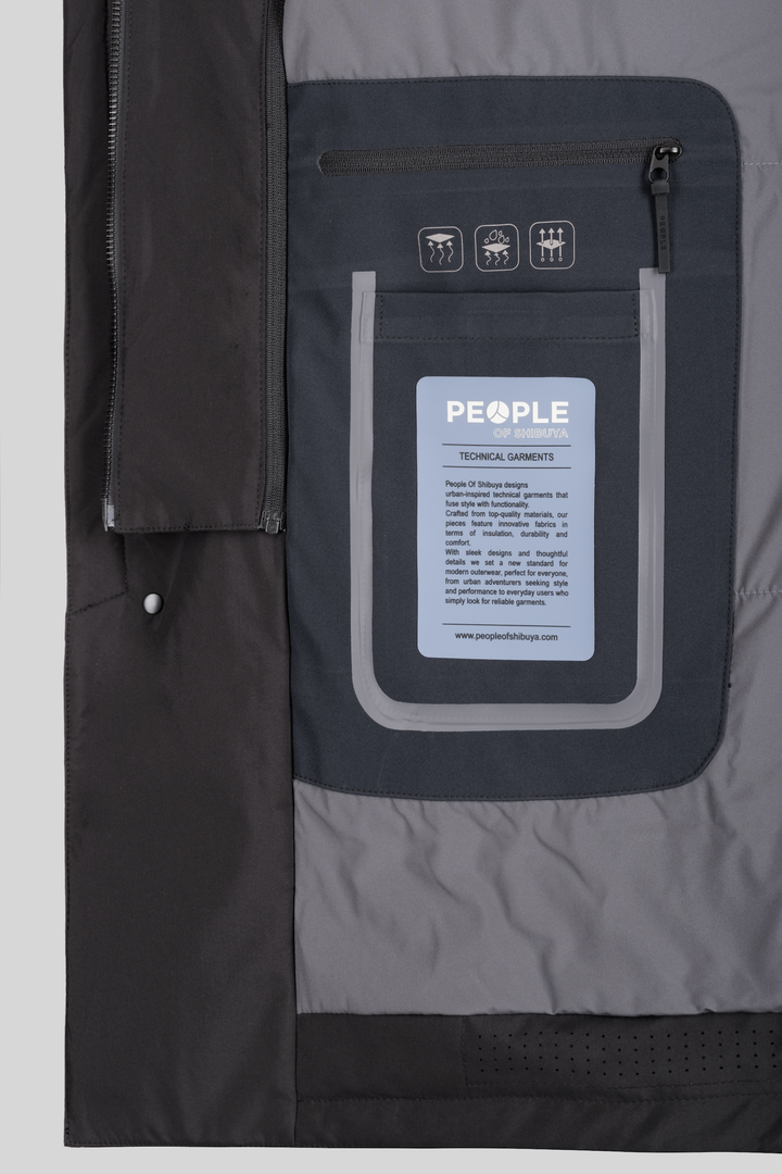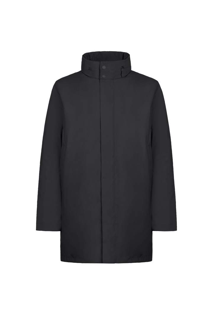 - Carcoat in tessuto tecnico con cappuccio in contrasto ghost inserito nel collo.