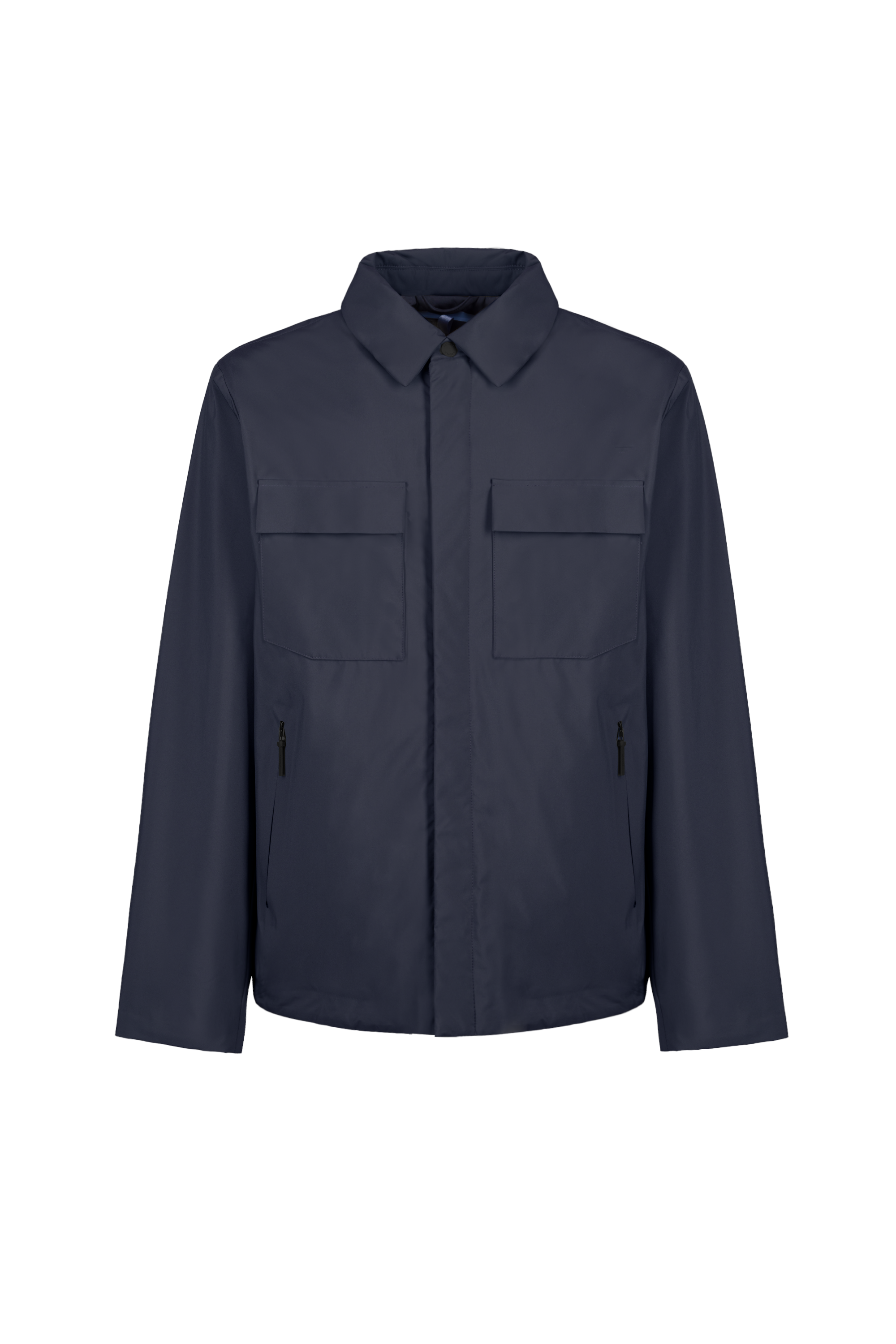 - Tasche anteriori superiori a pattina con bottone a pressione nascosto.