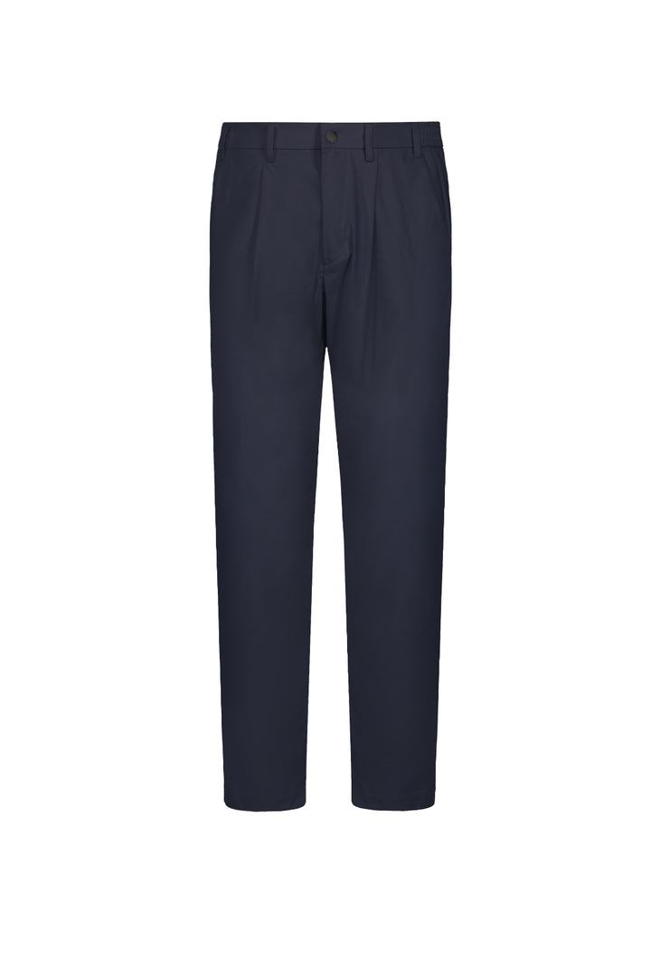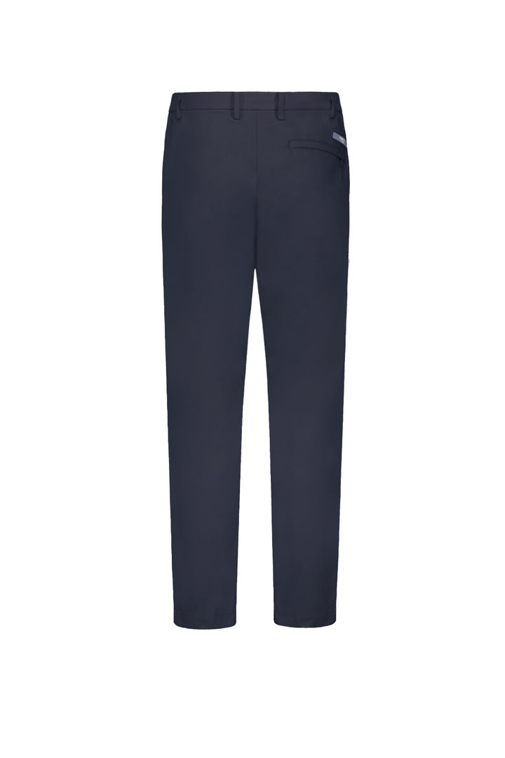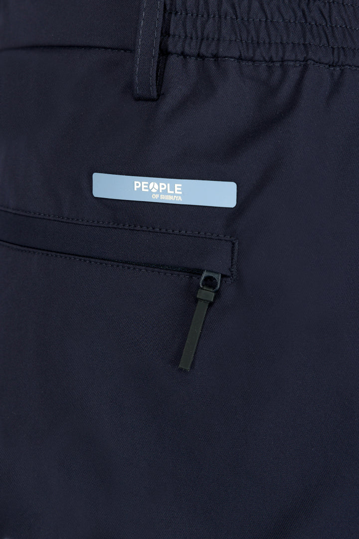 - Cintura in vita con fianchi elasticizzati e passanti e bottone a gancio personalizzati.