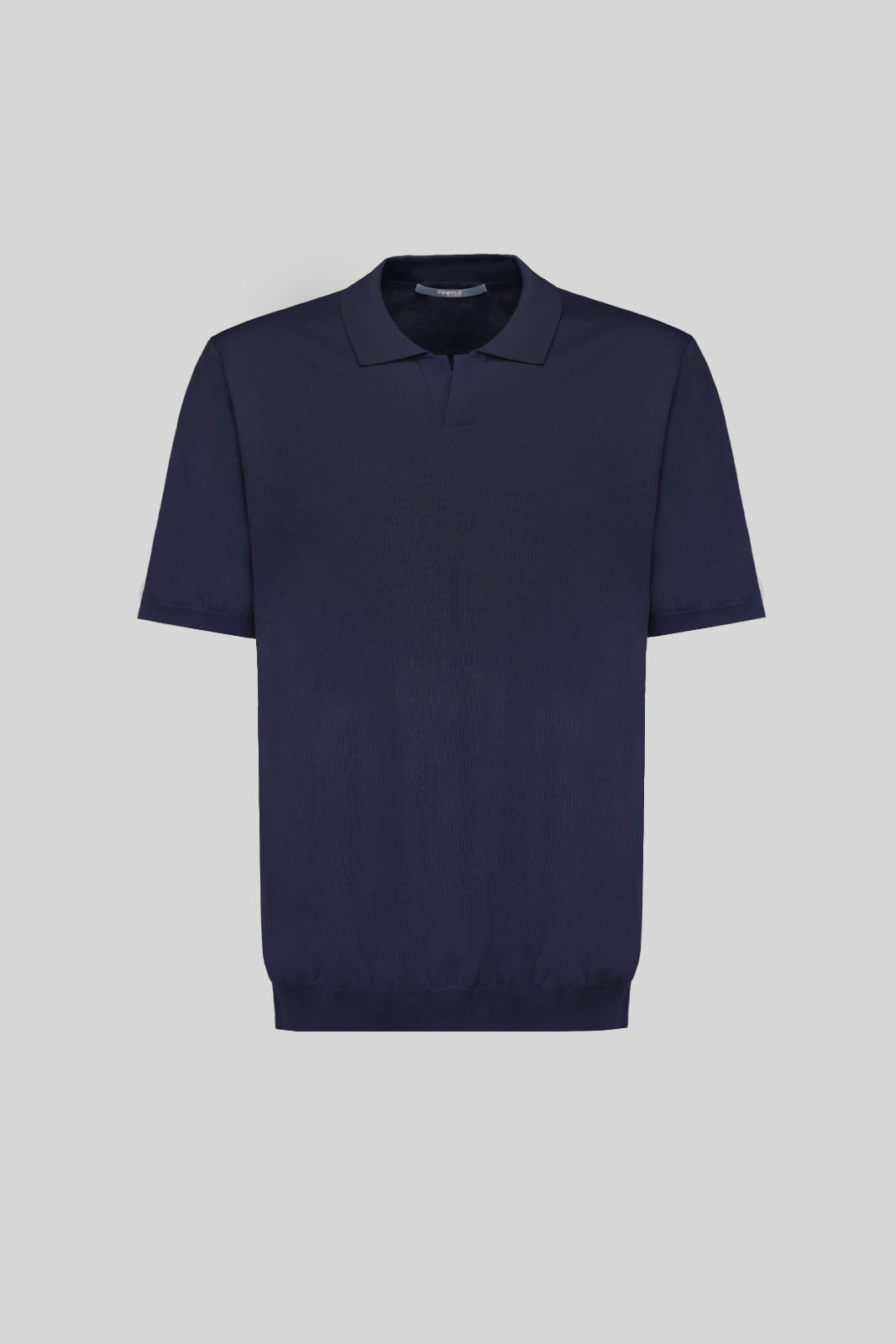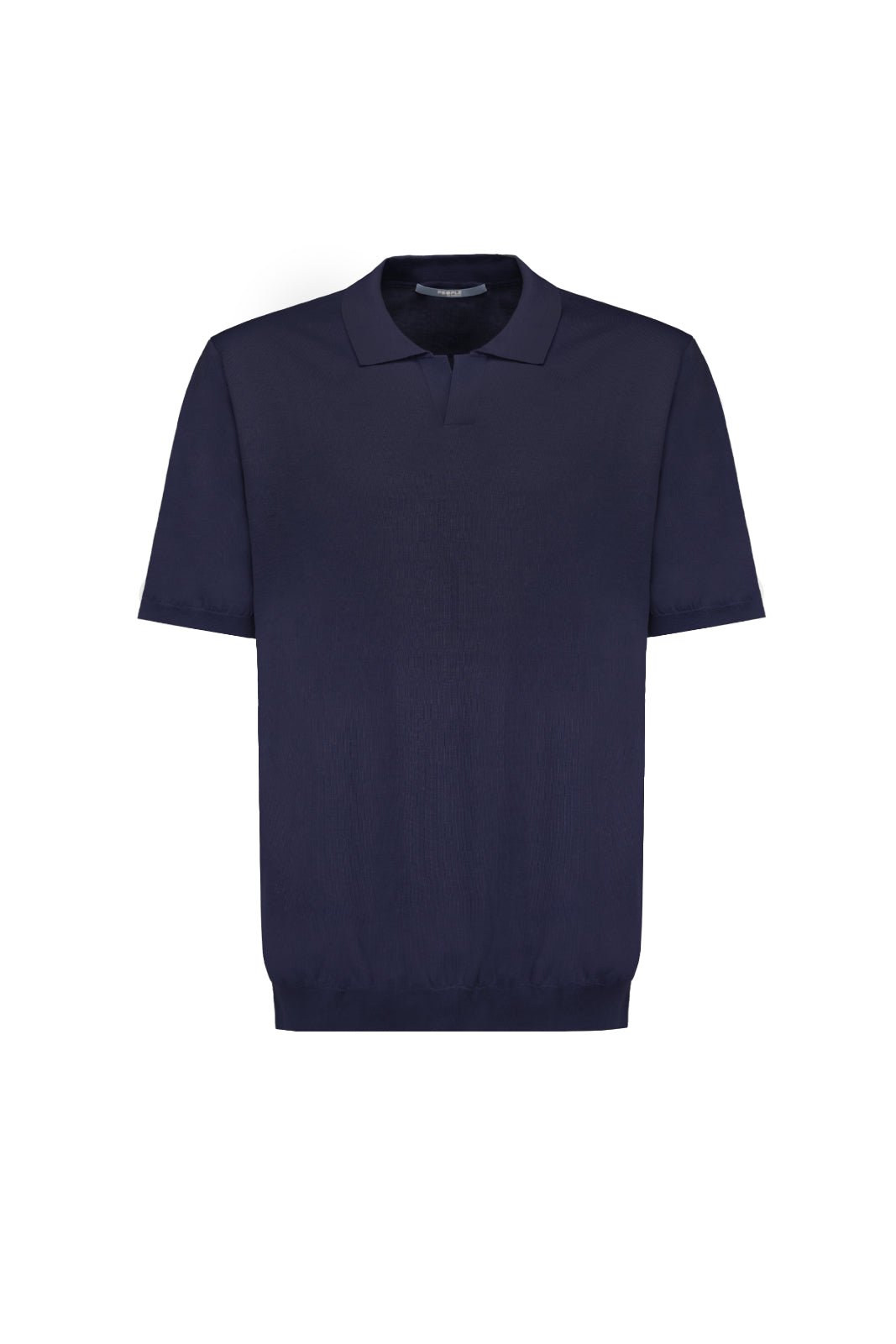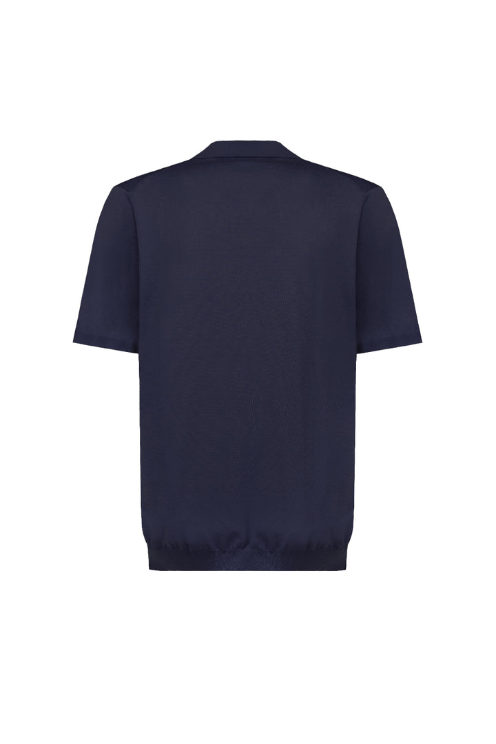 - Polo con manica a giro in maglia con piccolo scollo a V aperto.