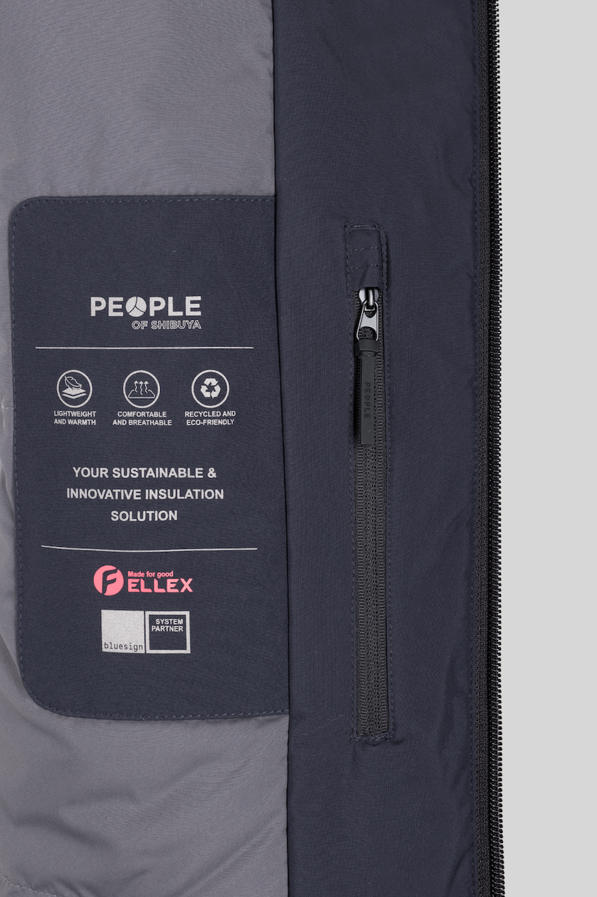 - Utility in tessuto tecnico con isolante termico interno “FELLEX” 100% riciclato con cappuccio in contrasto ghost inserito nel collo.