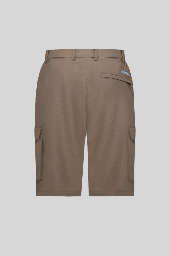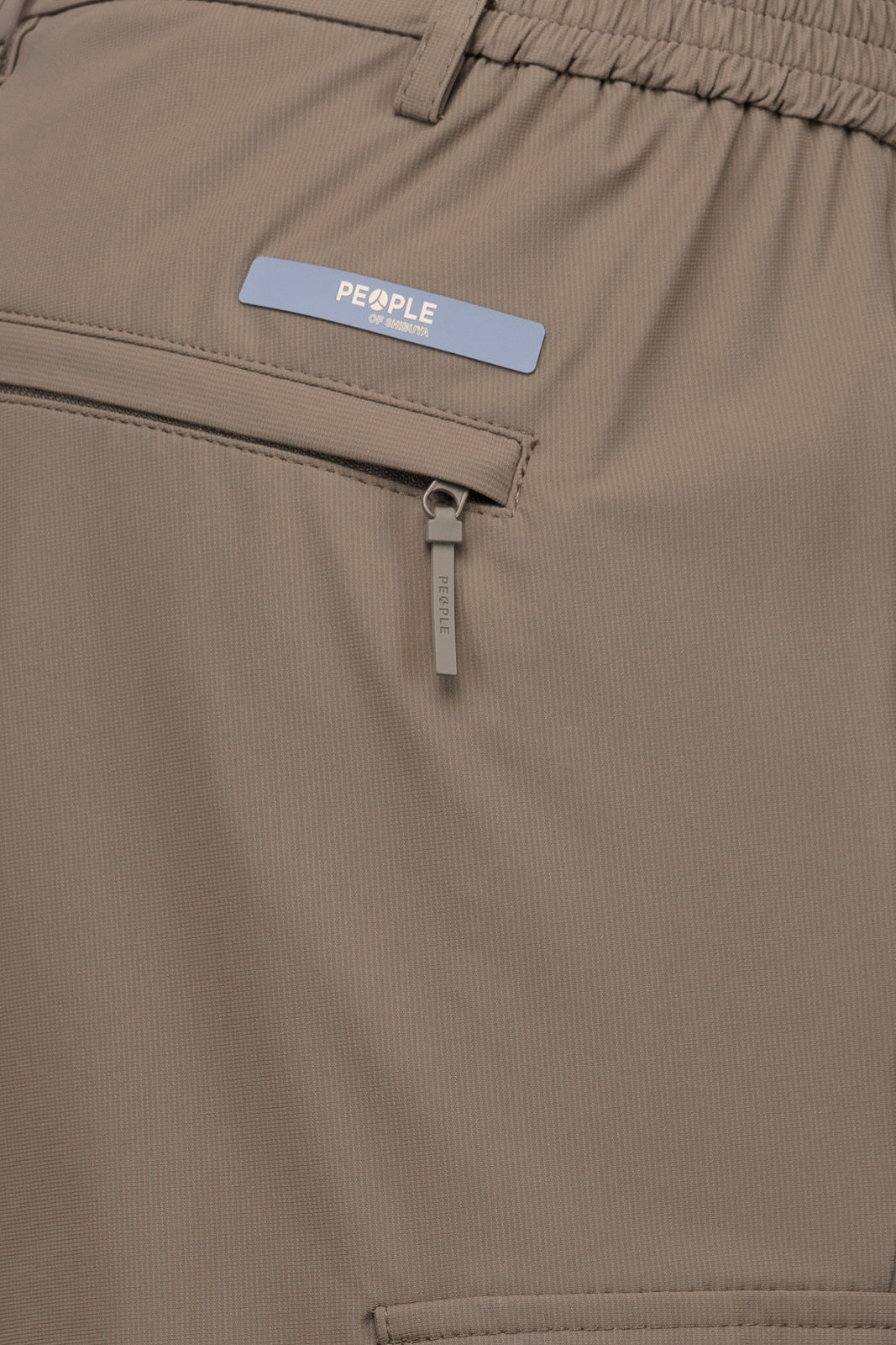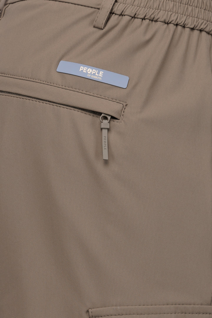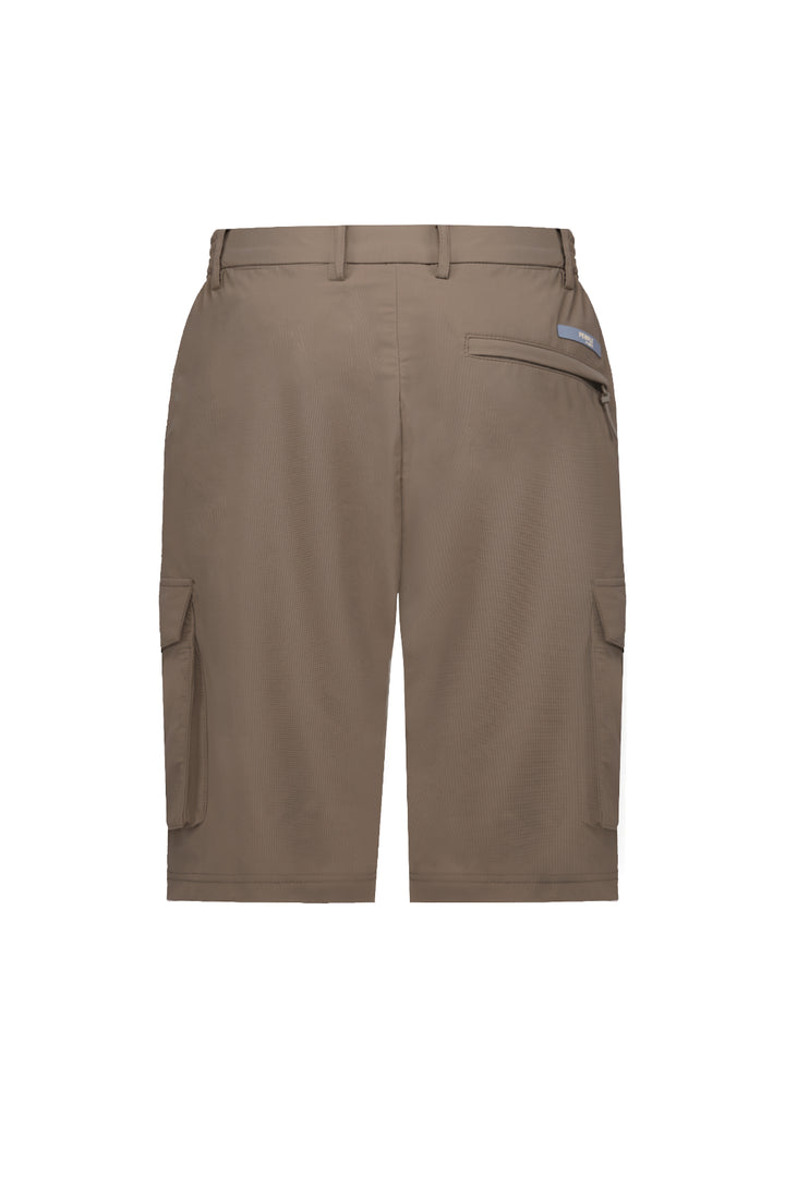 - Cintura in vita con fianchi elasticizzati e passanti e bottone a gancio personalizzato.