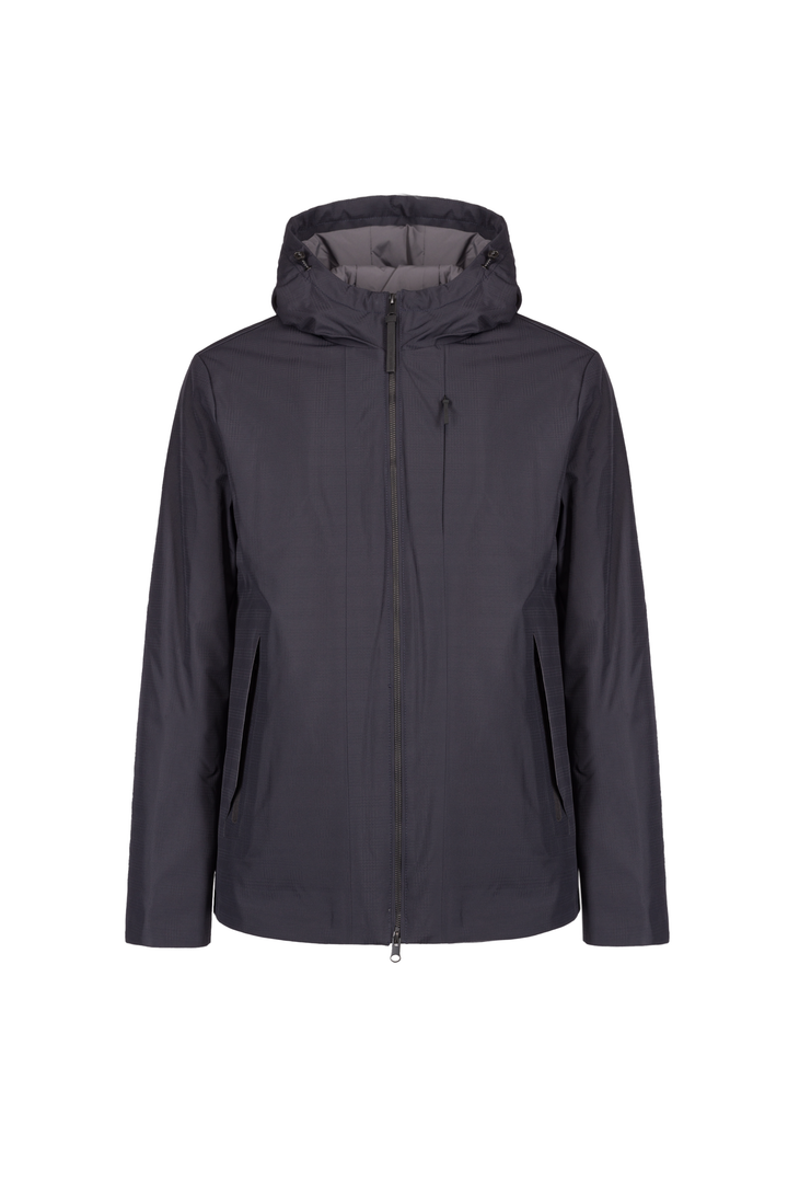 - Giubbotto in tessuto tecnico melange con cappuccio con coulisse.