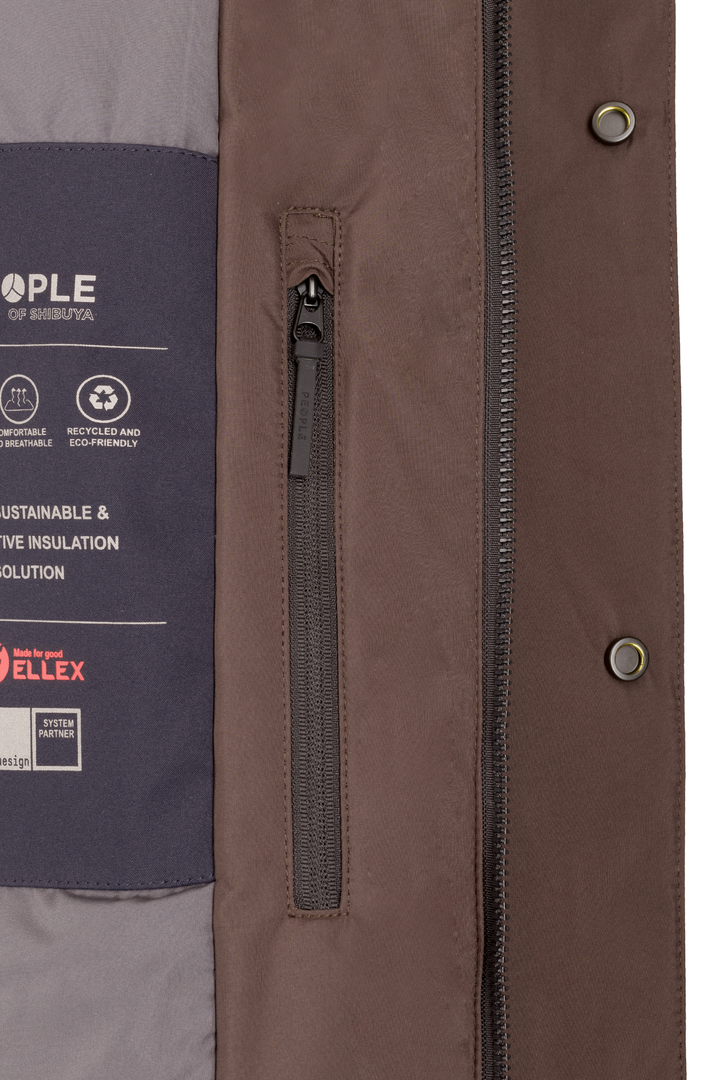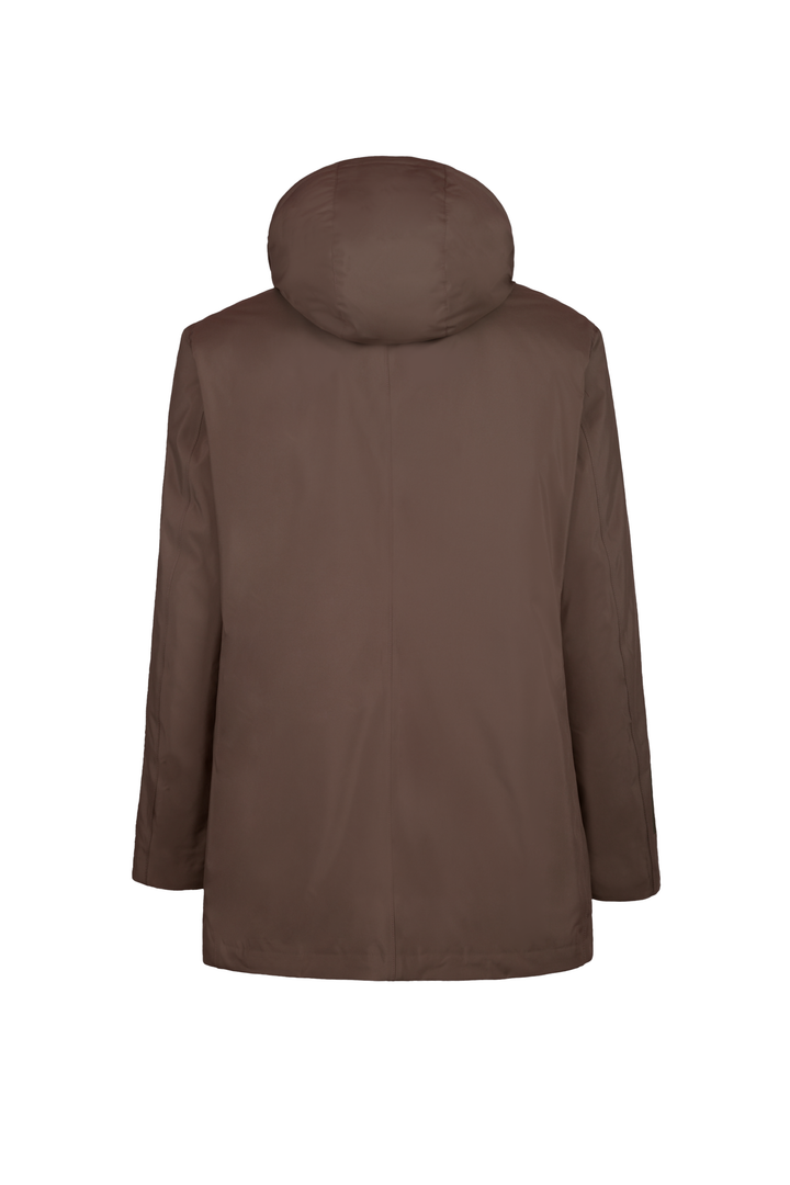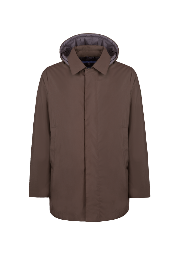 - Parka in tessuto tecnico con cappuccio con coulisse.