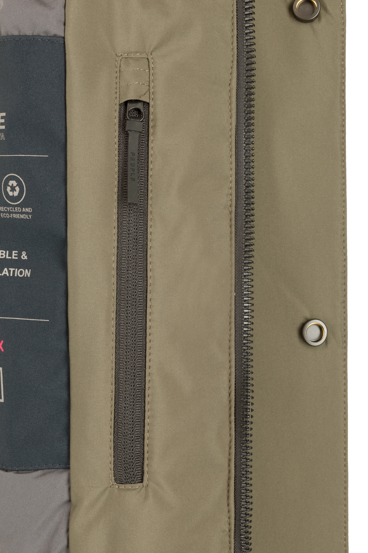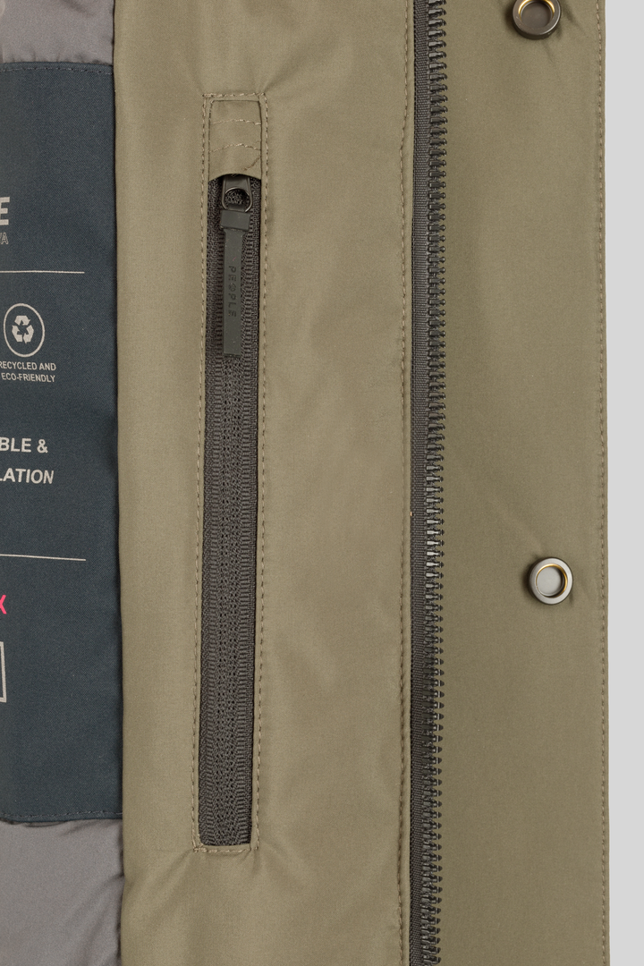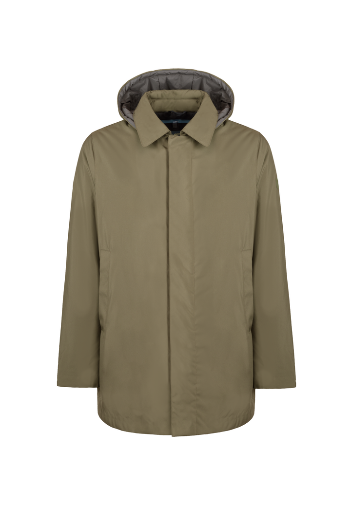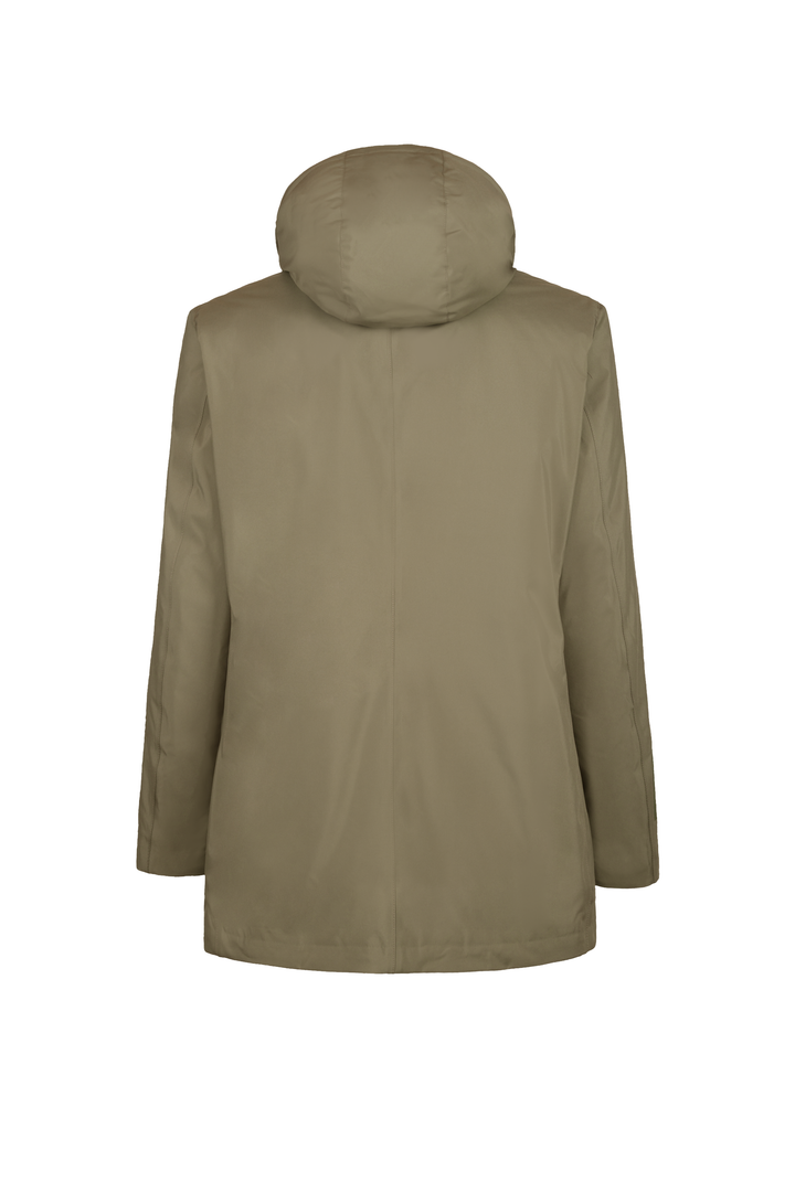 - Parka in tessuto tecnico con cappuccio con coulisse.