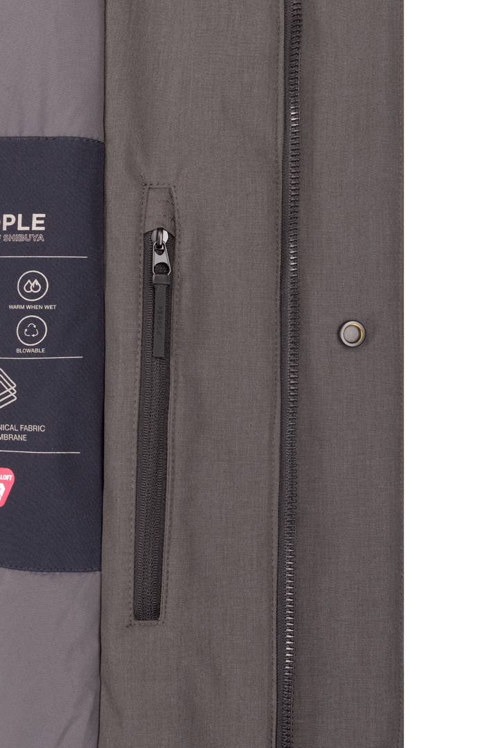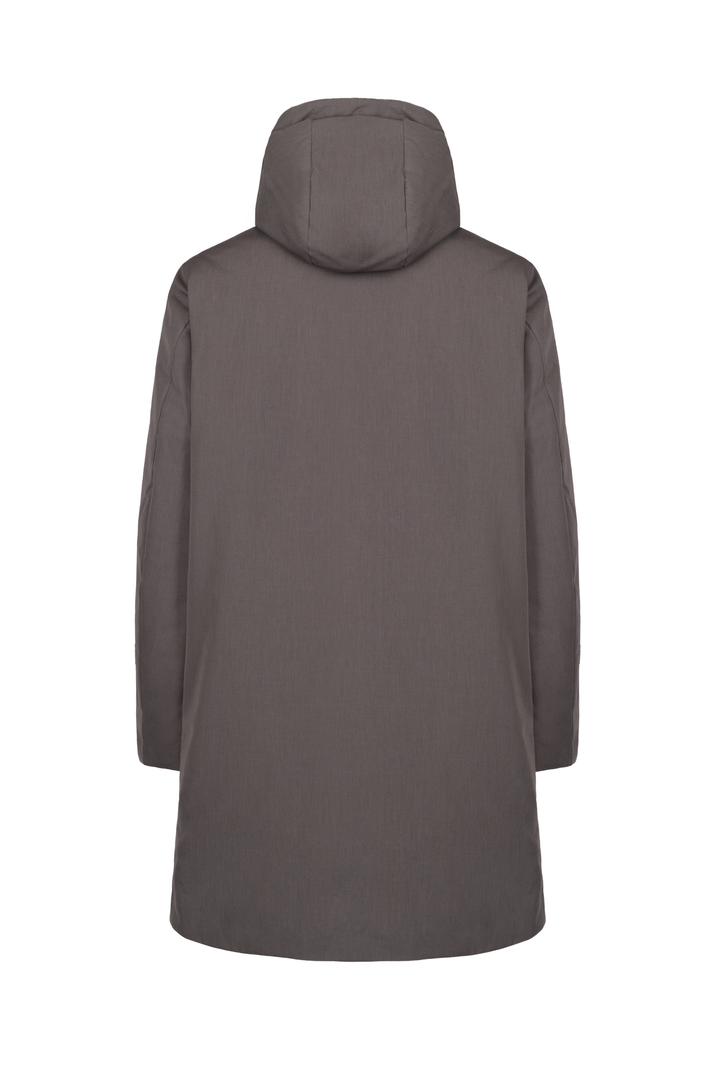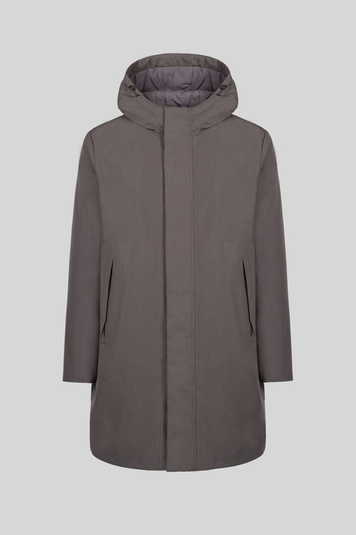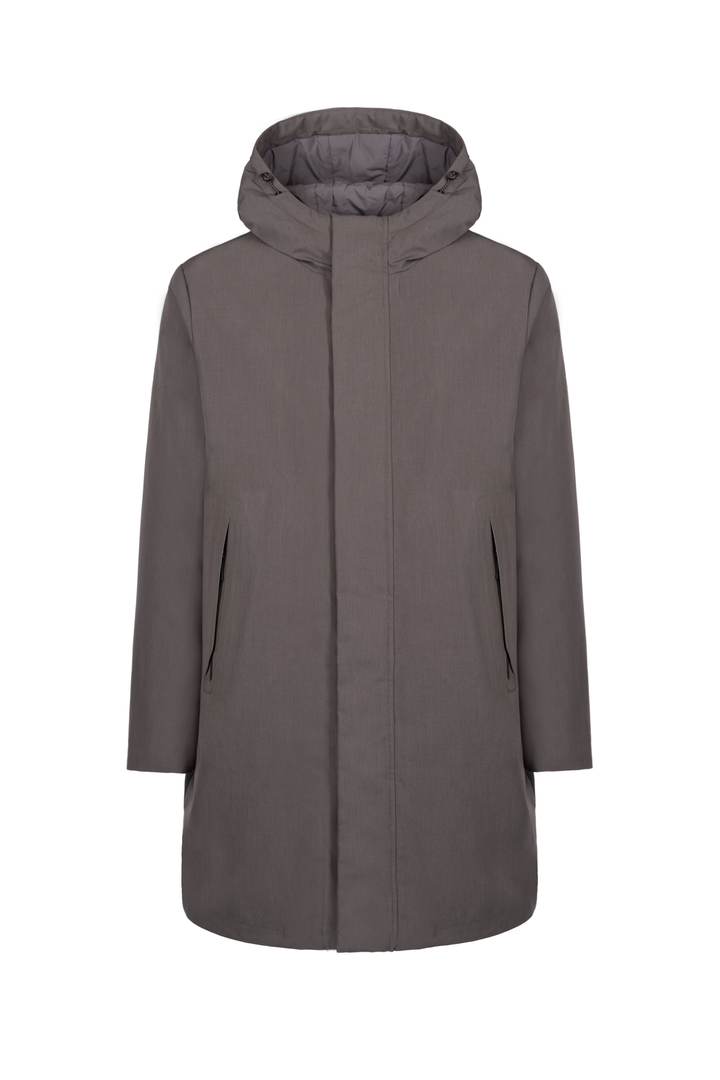 - Parka in tessuto tecnico effetto melange con cappuccio con coulisse.